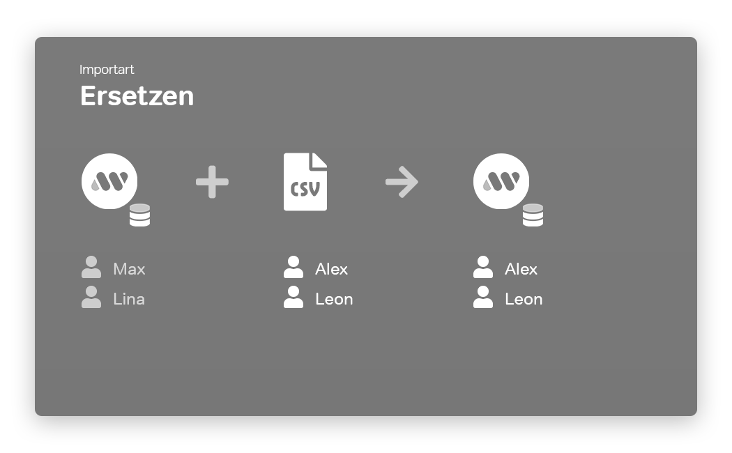 Im Beispiel würden Max und Lina gelöscht, anschließend Alex und Leon neu angelegt. --> Importart: Aktualisieren