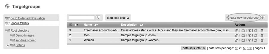 In CyMail, you are offered the option to sort the subscribers in target groups. There are many possibilities for organization – such as sex, age or interests. In order to simplify the beginning, 3 target groups are already defined in CyMail.