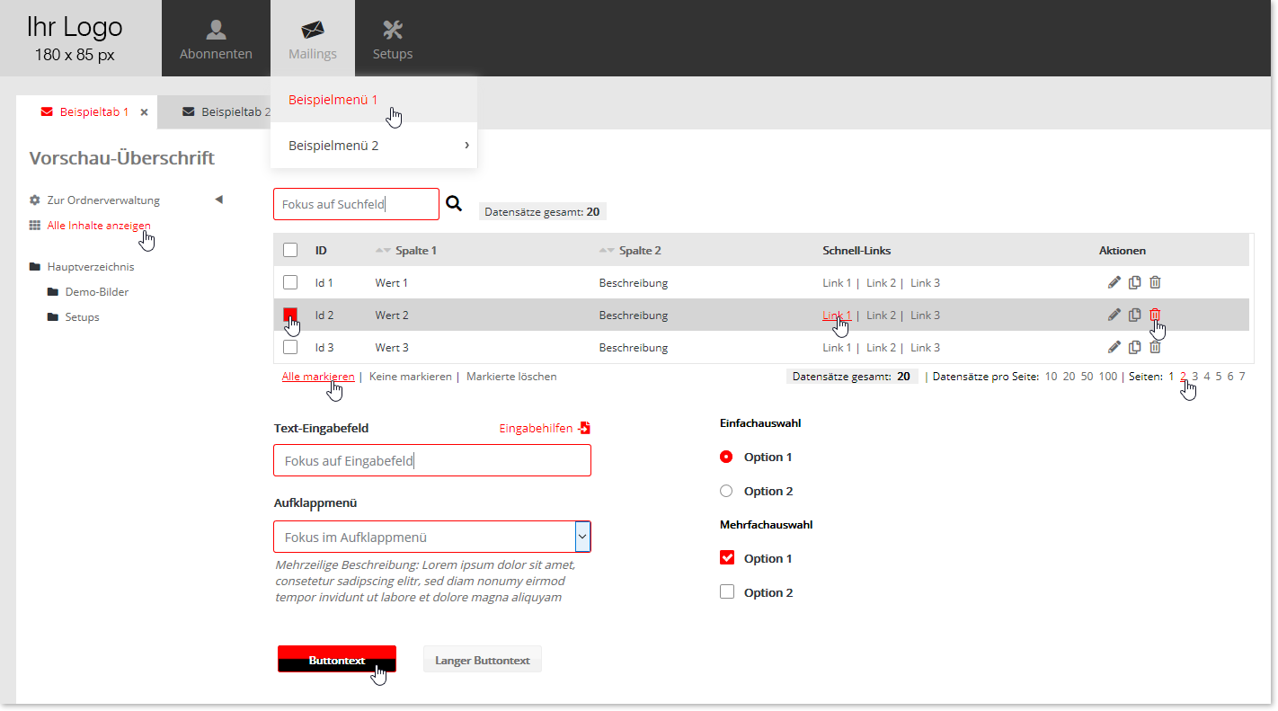 Mit unserem White Label Editor passen Sie das Layout Ihres Accounts mit wenigen Klicks an Ihr Corporate Design an. HTML- oder CSS-Kenntnisse sind dazu nicht erforderlich.